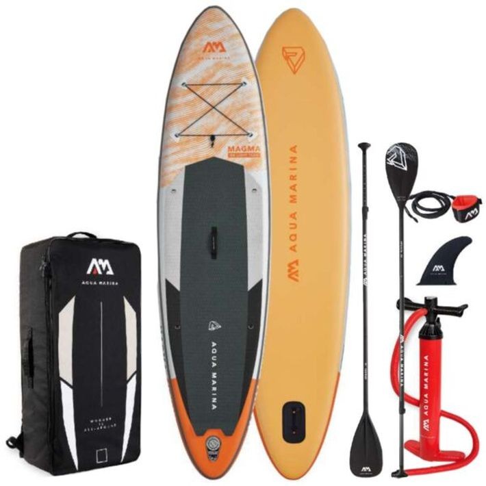 Piepūšamā SUP dēlis Aqua Marina MAGMA 112 ″ 2021 ir mūsdienīgs universāls SUP dēlis ar paaugstinātu līmeni. Tas ir vispopulārākais SUP dēlis, kas piedāvā fantastisku daudzpusību ar nepārspējamu kvalitāti, jauninājumiem un dizainu. Magma dēlis ir paredzēts visiem apstākļiem. Īsāki modeļi ir labāki, lai brauktu ar maziem viļņiem, un garāki modeļi ir labāki gariem peldējumiem vai ģimenēm. Pateicoties drop stitch lite tehnoloģijai, jaunie universālie Aqua Marina dēļi ir vislabākā cenas un kvalitātes attiecība tirgū ar neticamu stingrību un minimālo svaru. Mūsu vispopulārākie universālie modernākie dēļi ir vislabāk pārdotie, piedāvājot fantastisku daudzpusību un nepārspējamu kvalitāti, inovāciju un dizainu. Paredzēts izmantošanai visdažādākajos apstākļos un visu veidu braucējiem. Īsāki modeļi ir labāk, lai noķertu dažus viļņus, savukārt garāki un platāki modeļi ir paredzēti smagākiem airētājiem vai ģimenēm, kas airēs kopā uz viena un tā paša dēļa. Drop Stitch Light tehnoloģija padara jauno Aqua Marina līniju par vismodernāko piepūšamo SUP tirgū ar neticamu stingrību un svara attiecību. Visu prasmju līmeņa braucējiem, kuri vēlas būt kustīgi uz gludiem ezeriem un maziem viļņiem. Visizdevīgākā cena un biļete uz SUP iekāpšanas pasauli!