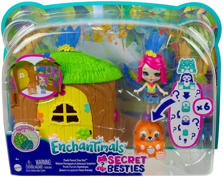 GTM49 / GTM46 Enchantimals Peeki Parrot and Tree House Doll with Surprise Matrioska Pet and Toy Hous