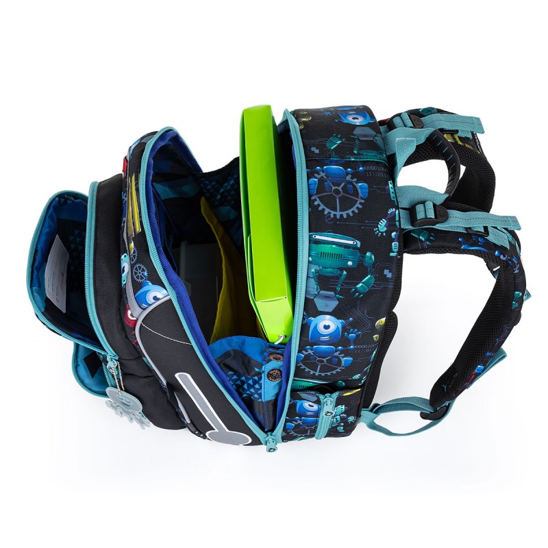 Topgal BEBE 23011 — ortopēdiska skolas soma ar robotiem zēniem 1.–2. klasei
