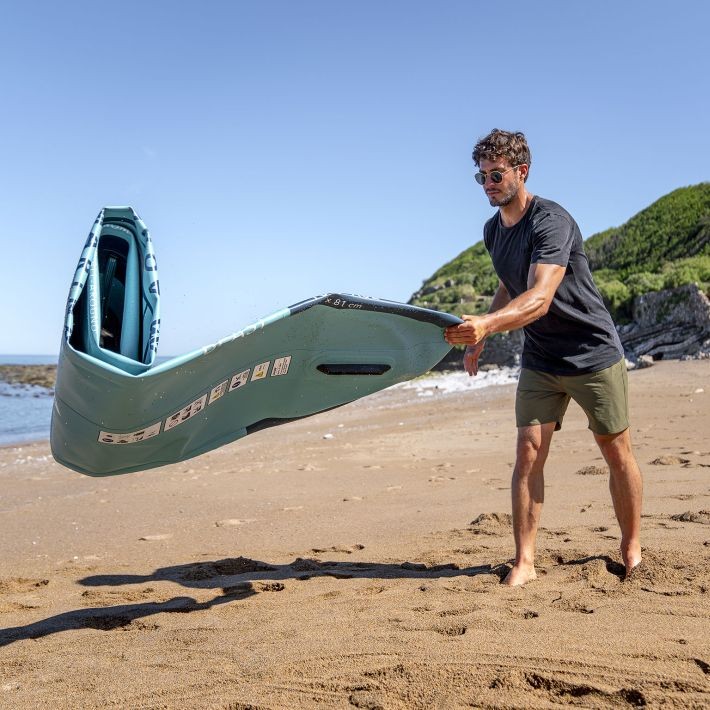 Universālās sērijas 2023 modernie un tehnoloģiskie SUP dēļi, cita starpā, ir neticami kompakti - iztukšotais SUP dēlis ar visiem peldēšanai nepieciešamajiem piederumiem ir viegli salokāms stilīgā un ērtā mugursomā, kas aprīkota ar ūdensizturīgu rāvējslēdzēju.