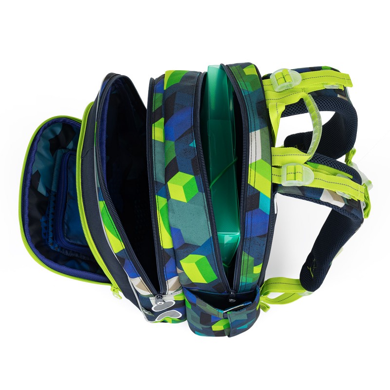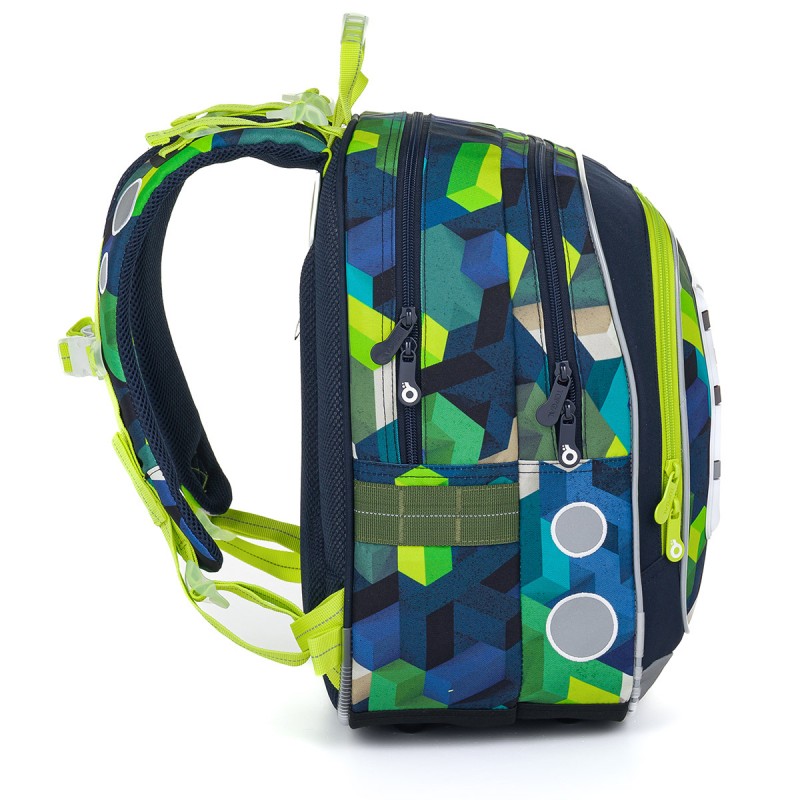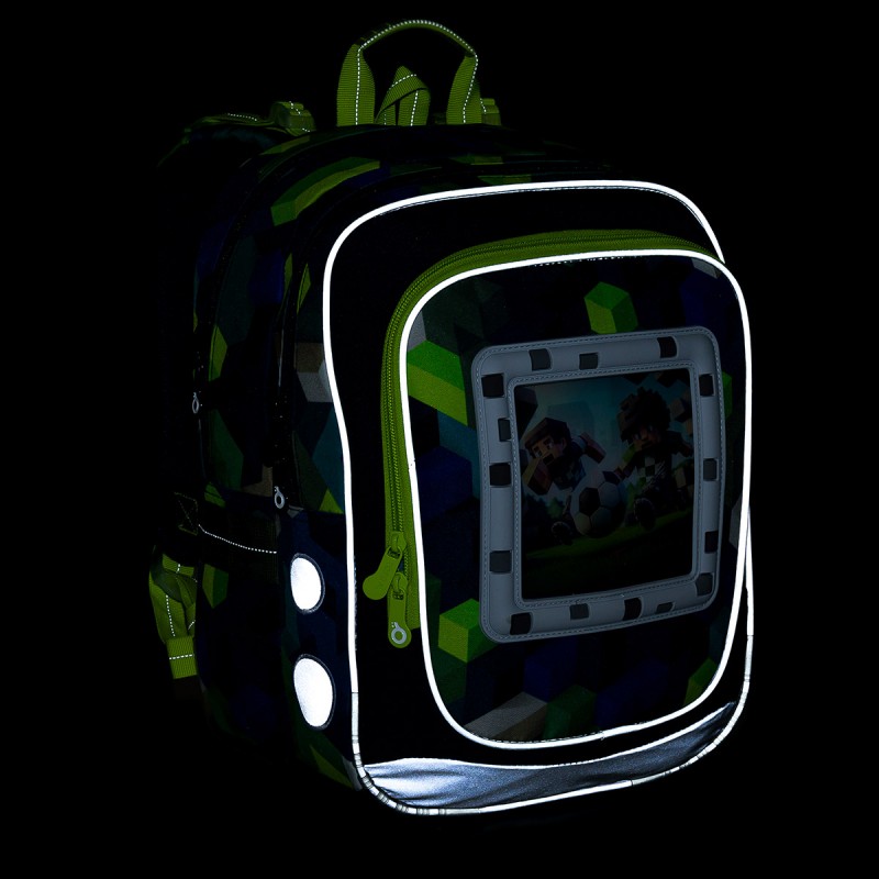 Topgal ENDY 24015 B ir īpaši viegla un ergonomiska mugursoma, kas sver tikai 880 gramus, padarot to ideāli piemērotu zēniem no 110 cm auguma. Tās dizains ar maināmiem PixelArt stila attēliem ar dzīvnieku un sporta motīviem iepriecinās visus datoru spēļu cienītājus.