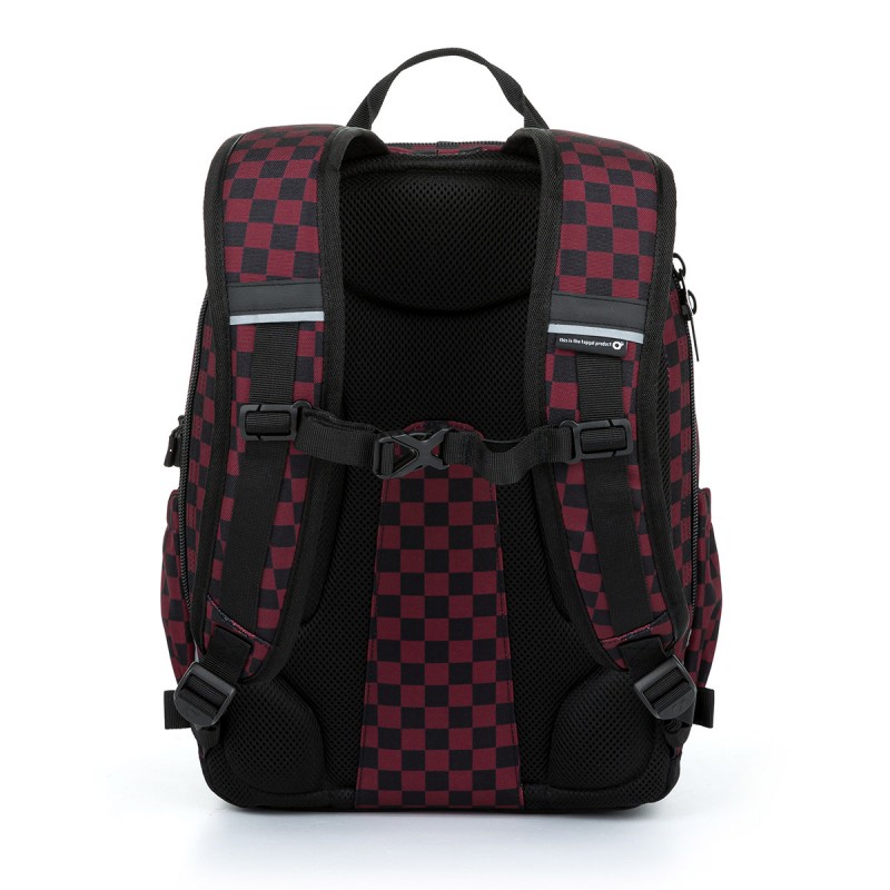 Šī ietilpīgā un funkcionālā mugursoma ar spilgtu šaha dizainu sarkanā un melnā krāsā ir radīta pusaudžiem un studentiem no 145 cm auguma. Tā ir lieliski piemērota ikdienas lietošanai skolā, universitātē un ārpusstundu aktivitātēm.