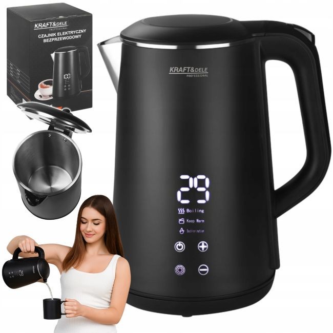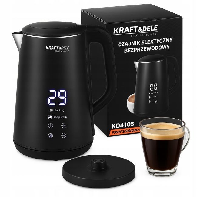 KD4105 elektriskā tējkanna ir moderna un ērta ierīce, kas aprīkota ar precīzu temperatūras kontroli un LED displeju, kas parāda pašreizējo temperatūru. Tās 1500 W jauda un 1,6 litru ietilpība ļauj ātri uzvārīt ūdeni, savukārt siltuma uzturēšanas funkcija uztur iestatīto temperatūru, novēršot nepieciešamību atkārtoti uzsildīt ūdeni.