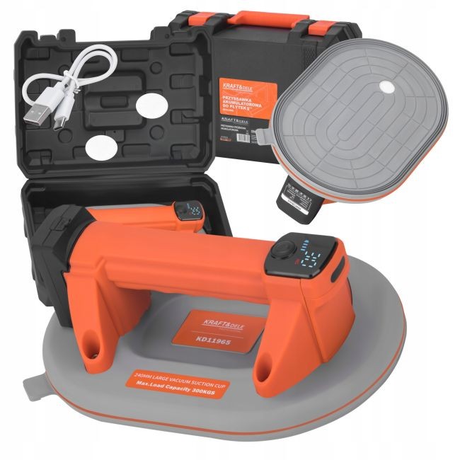 KD11965 ir profesionāls bezvadu piesūceknis ar 240 mm diametru un maksimālo celtspēju līdz 300 kg. Tas ir paredzēts drošai un ērtai lietošanai uz gludām virsmām, piemēram, stikla, akmens plāksnēm un metāla loksnēm.