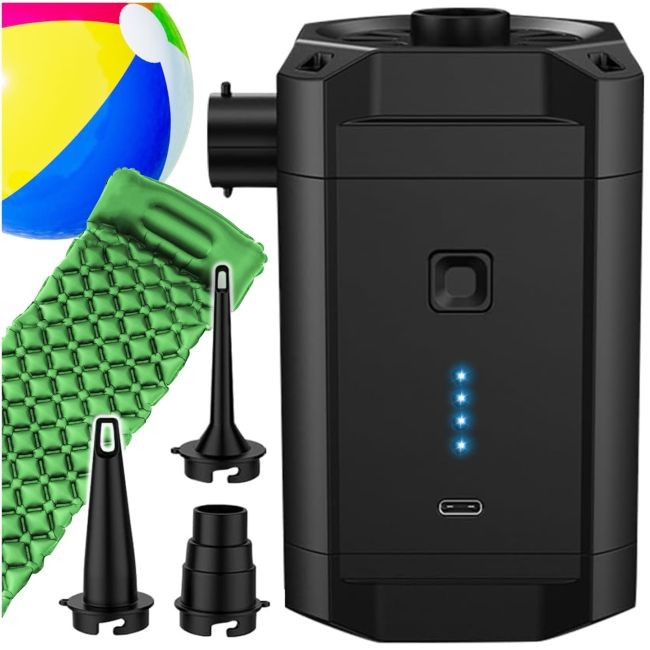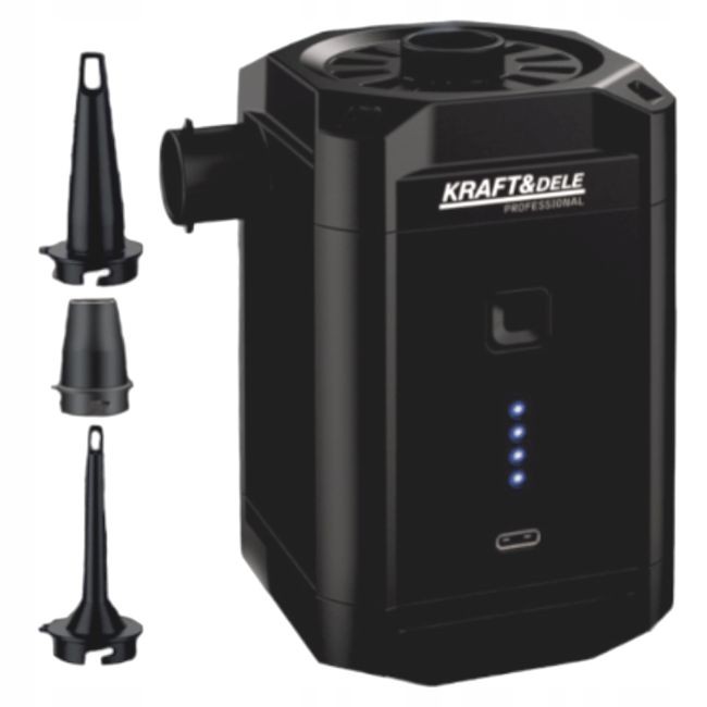 KD5501 Bezvadu sūknis matračiem un piepūšamajām laivām, USB-C, 5500 mAh, LED gaisma + uzgaļi.