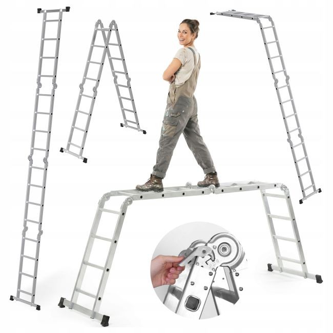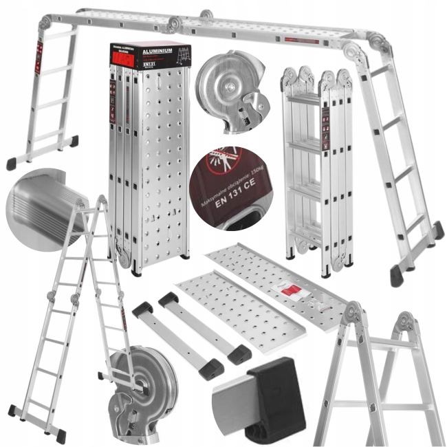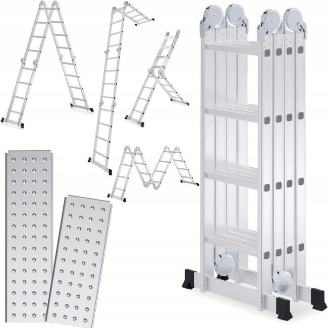KD4071 ir profesionālas alumīnija kāpnes no KRAFT&DELE, kas paredzētas lietotājiem, kuriem nepieciešams daudzpusīgs un uzticams instruments darbam augstumā. Kāpņu 4x4 dizains nozīmē, ka tās sastāv no četrām sekcijām, katra no kurām ir aprīkota ar četriem izturīgiem pakāpieniem. Šis izkārtojums ļauj veikt plašu konfigurāciju klāstu, padarot tās ideāli piemērotas būvniecības, renovācijas, dārzkopības un uzstādīšanas darbiem.