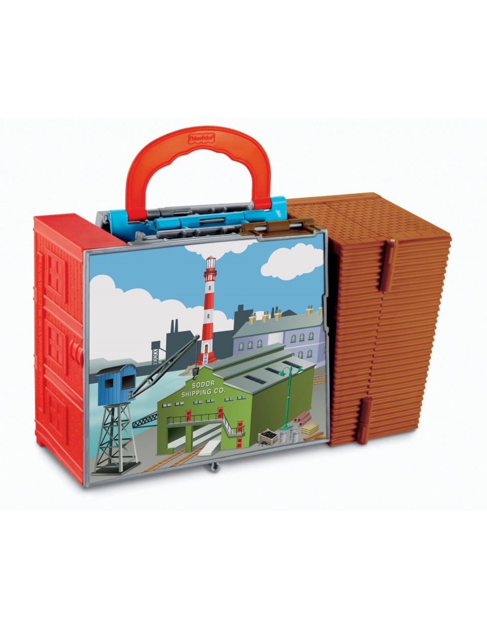 "Tomass un viņa draugi" Trase ir lielā cieņā šīs multfilmas mazajiem skatītājiem! No nelielā, kompaktā čemodāniņa var viegli izveidot īstu dzelzceļa trasi. Komplekts sastāv no divām stacijām, kuras savienotas ar dzelzeļa sliežu tīklu. Komplektu var kombinēt ar citiem Fisher Price sērijas Take-n-Play dzelzceļiem, kā arī tas ir savietojams ar citiem elementiem no sērijas Fisher Price Thomas & Friends.