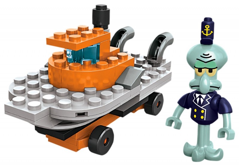 Когда Сквидвард не скучает за кассой в «Красти Краб», его можно увидеть гоняющим на лодке из набора «Гонщик Сквидвард» от Mega Bloks SpongeBob SquarePants! Сквидвард одет в свою капитанскую форму и готов к безумному морскому путешествию. Ты можешь построить лодку и отправить ее в плаванье по Бикини Боттом! Собери все наборы и построй свой мир Бикини Боттом!