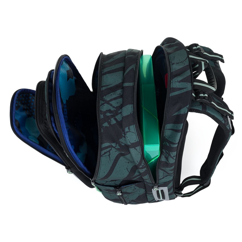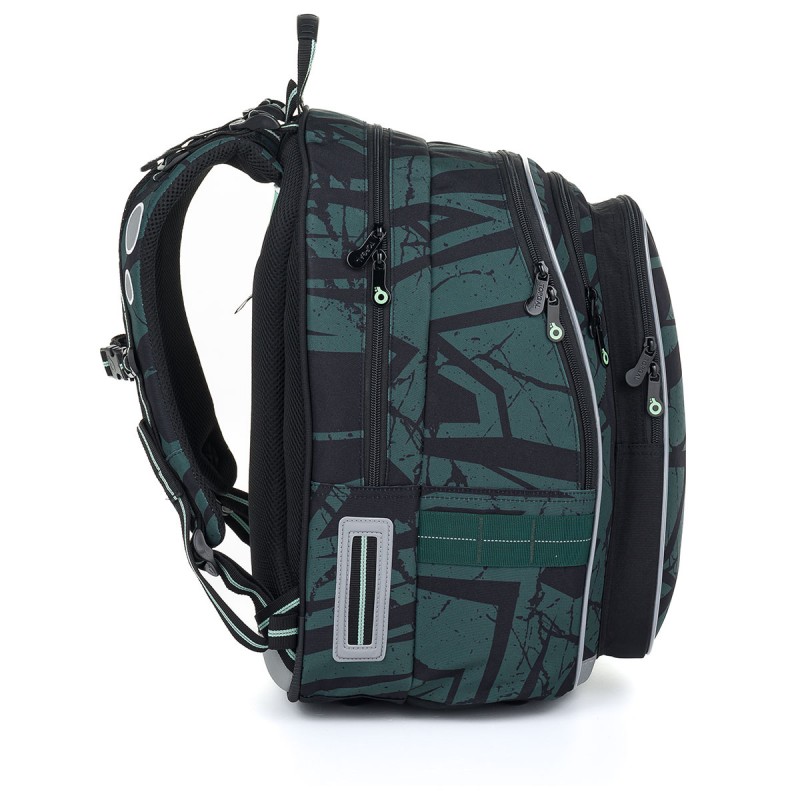 Mugursoma Topgal LYNN 24018 apvieno stilīgu dizainu un funkcionalitāti, padarot to par ideālu izvēli zēniem un meitenēm ar augumu no 125 cm. Tās abstraktais raksts zaļi-melnos toņos padara to par universālu izvēli skolēniem, kuri dod priekšroku atturīgam stilam.