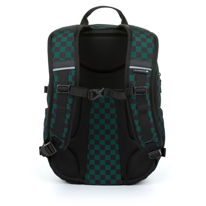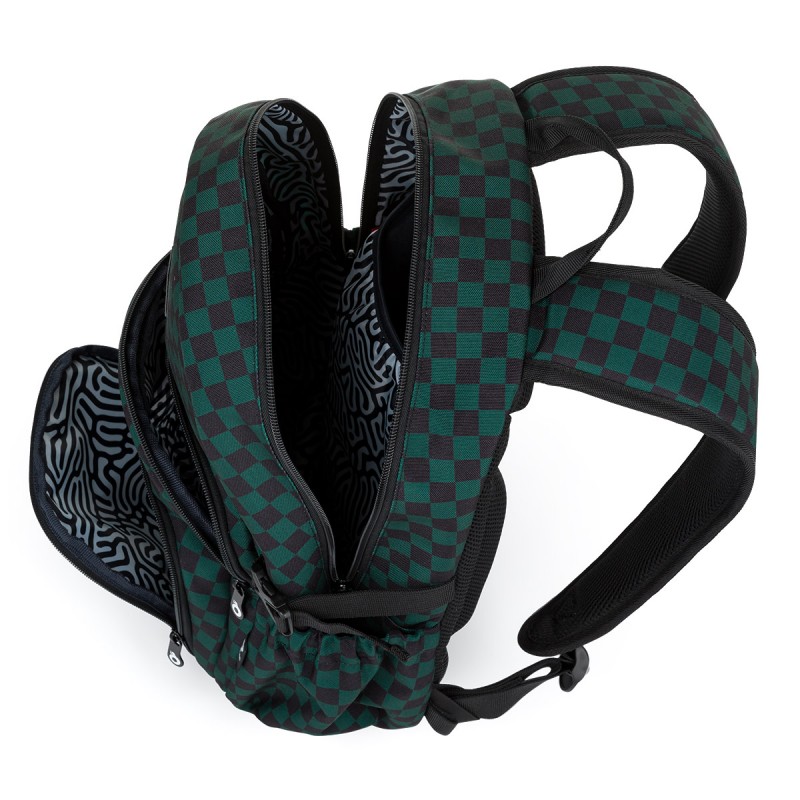 Этот вместительный и функциональный рюкзак с ярким шахматным дизайном в зелёно-чёрных тонах создан для подростков и студентов ростом от 145 см. Он идеально подходит для ежедневного использования в школе, университете и на внеклассных мероприятиях.