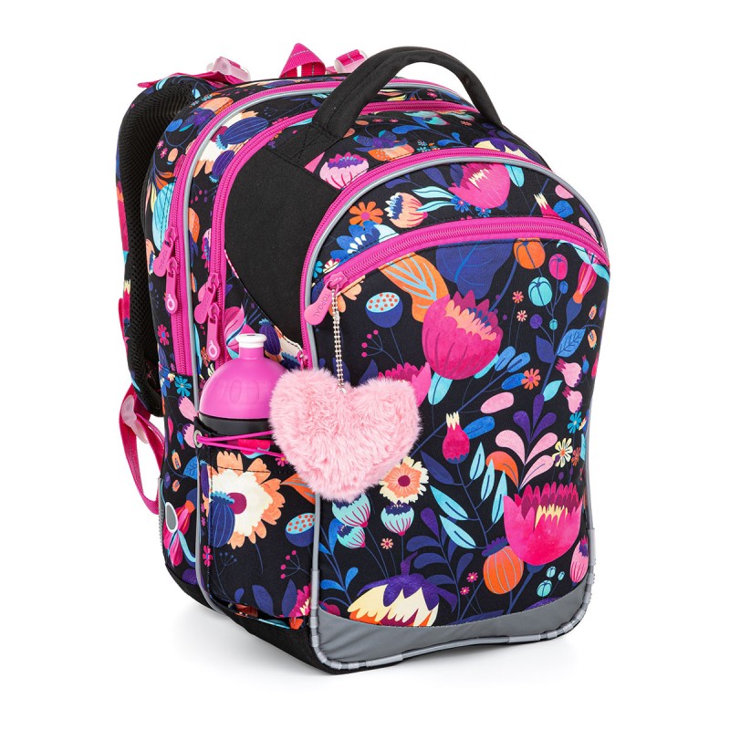Этот стильный и лёгкий рюкзак с ярким цветочным принтом и плюшевым брелоком в форме сердца создан специально для девочек ростом от 120 см. Он идеально подойдёт как для ежедневного ношения в школу, так и для внеклассных занятий.