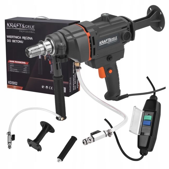 Сверлильный станок KD5952 — профессиональный инструмент, предназначенный для интенсивной работы с бетоном, кирпичом и другими строительными материалами. Благодаря высокой мощности 2300 Вт и возможности водяного охлаждения, устройство обеспечивает эффективную и безопасную работу даже при длительном сверлении. Возможность использования больших свёрл (до Ø202 мм) делает его идеальным решением как для строительных компаний, так и для требовательных индивидуальных пользователей. Дополнительные функции, такие как выдвижная рукоятка и опорная рама, обеспечивают точность, устойчивость и комфорт в любых условиях работы.
