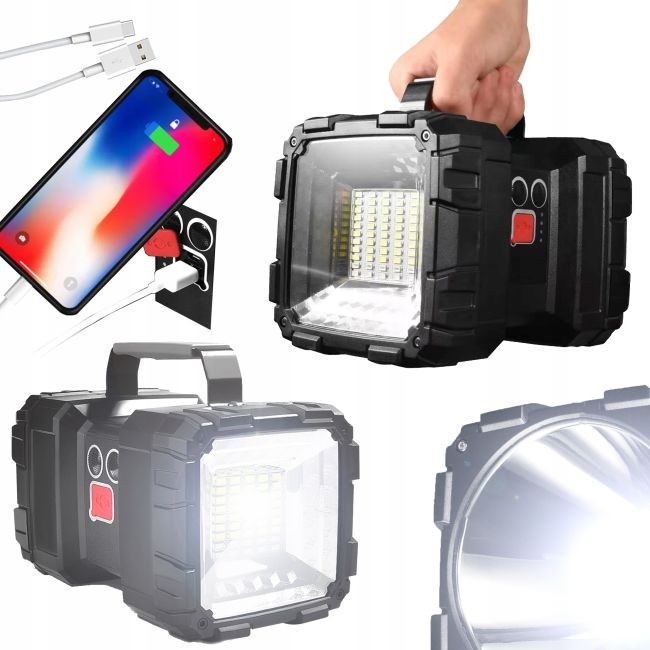 ⚙️ Режимы освещенияШирокоугольный фонарик: 4 режима, Прожектор: 3 режима
