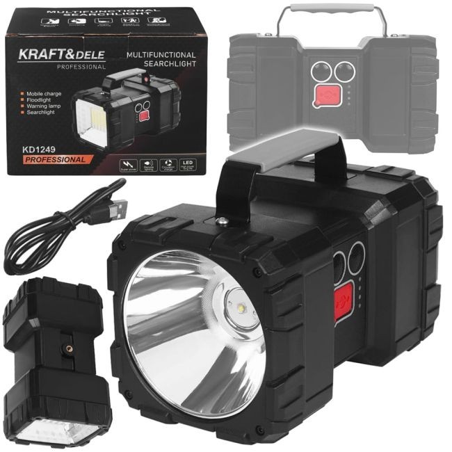 Универсальный светодиодный фонарь KD1249 от KRAFT&DELE сочетает в себе функции освещения, портативного зарядного устройства и аварийного сигнала. Благодаря мощным светодиодам и различным режимам освещения он идеально подходит для дома, мастерской и активного отдыха, обеспечивая долговечный и надежный источник света.
