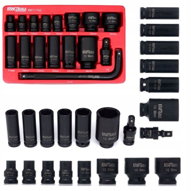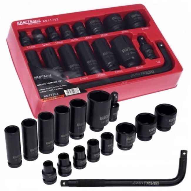 Профессиональный набор ударных торцевых ключей от Kraft&Dele, маркировка KD11762, предназначен для использования с пневматическими устройствами, работающими в очень сложных условиях при переменных нагрузках.