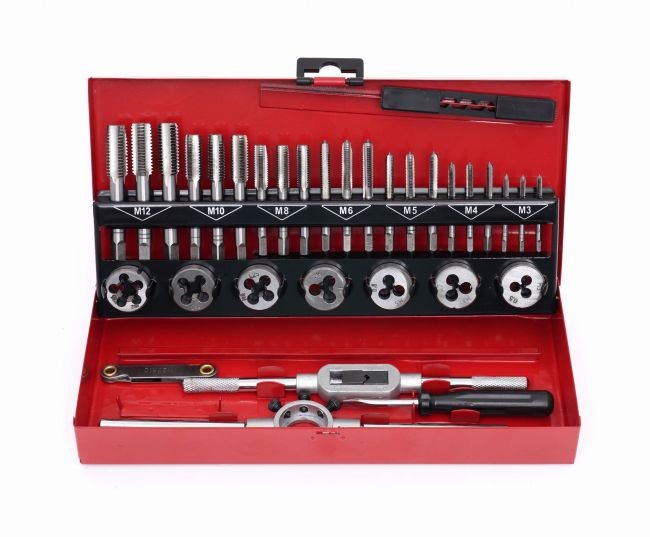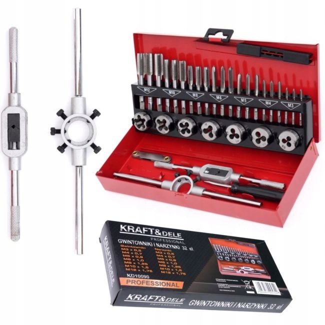 Профессиональный набор метчиков и плашек артикул KD10090. Эти простые в использовании и качественно изготовленные инструменты незаменимы в любой мастерской, домашнем гараже или на рабочем месте. Этот набор предназначен для ремонта всех типов резьбовых соединений в большинстве материалов. Изготовленные из высококачественной закаленной стали,