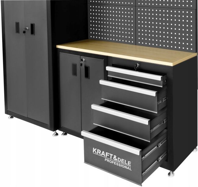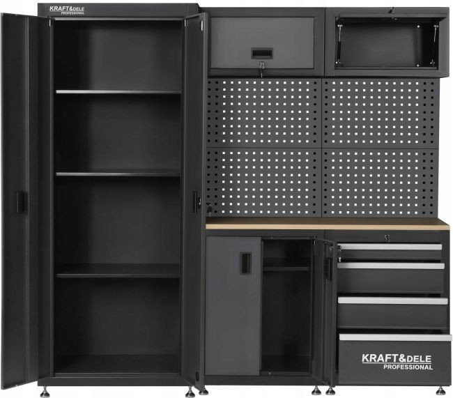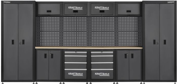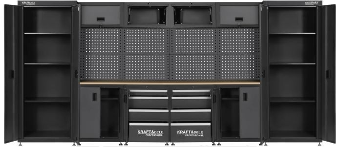 KD5862 — это полный комплект мебели для мастерской от KRAFT&DELE, разработанный с учетом потребностей профессионалов и взыскательных любителей-самоучек. Прочная конструкция, продуманная планировка и вместительное пространство для хранения делают его идеальным дополнением к любой мастерской, гаражу или технической лаборатории.