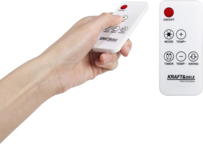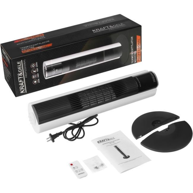 Современный керамический тепловентилятор KD11788 от KRAFT&DELE мощностью до 2000 Вт предназначен для быстрого и равномерного обогрева домов и офисов. Его тонкий, отдельно стоящий дизайн в элегантном черно-белом цвете идеально впишется в любой интерьер.