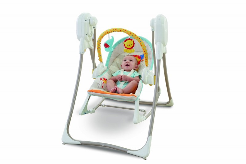 Электронные качели Fisher-Price Слоненок и львенок 3 в 1 BFH07 подойдет как для самых маленьких, так и для детей старшего возраста. Модель сочетает в себе кресло-качалку, качели и кресло. На съемной перекладине есть подвесные игрушки, которые развлекут малыша, когда он бодрствует. В устройстве есть 6 скоростей, 10 мелодий, а для безопасности малыша предусмотрены ремни. Максимальный вес ребенка для использования качелей составляет 18 кг.