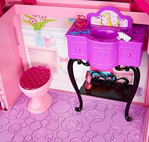Двухэтажный Malibu House на каждом этаже имеет просторные помещения, где куклы Barbie проводят свое свободное время отдыхая или веселясь с друзьями. На первом этаже расположена кухня с обеденным столом, за которым куклы могут собраться и обсудить последние сплетни во время ужина, а также просторная гостиная, где без особого труда можно устроить вечеринку! На второй этаж ведет шикарная винтовая лестница, там располагается туалетный столик, где кукла приводит себя в порядок, спальная комната с большой кроватью, где куклы предпочитают отдыхать после тяжелого дня, и туалет. Также в набор входит масса аксессуаров для более интересной и насыщенной игры с этим особняком.